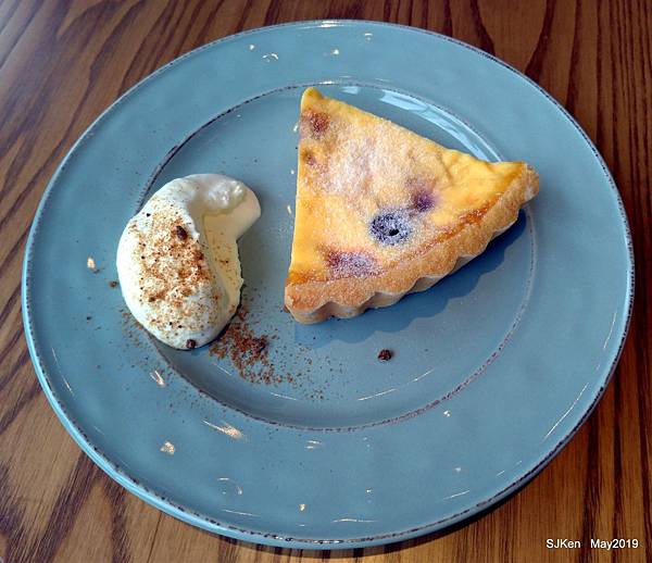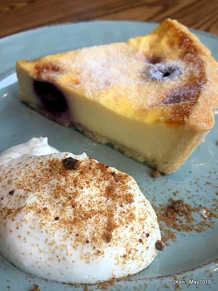 吃完冉冉大早餐,接受享用美味特色的三份甜點,首先品嚐的是「酒漬櫻桃布丁塔」(NT$130/份),入口軟嫩香甜,帶著微微酒漬香氣的櫻桃,隱身在飽滿滑嫩的布丁中,搭配奶泡一起享用,甜度恰到好處。