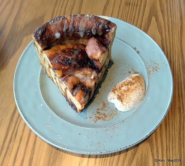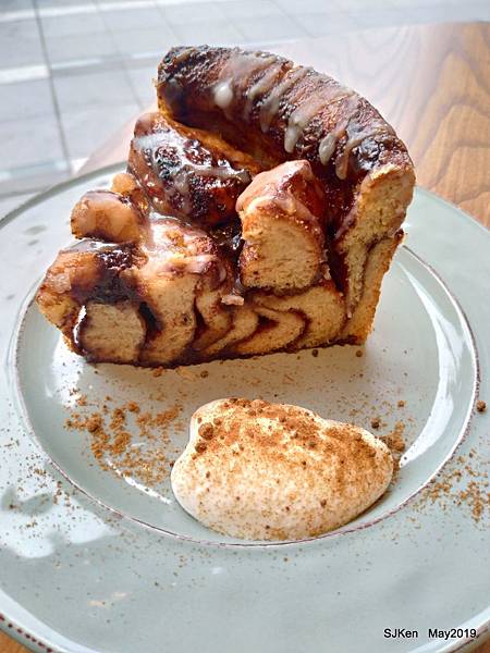接著是店內甜點的「招牌肉桂蝸牛捲」(NT$108/份),獨特的蝸牛造形色澤外觀的肉桂捲讓人一看驚豔,灑上糖霜入口苦中帶甜,香韻迷人。